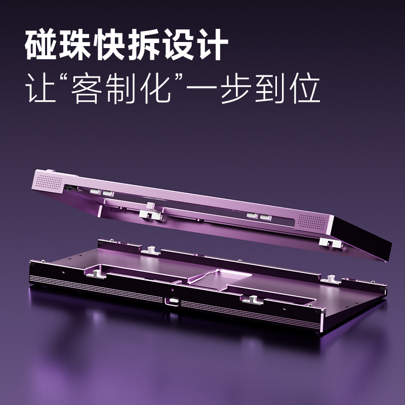 MOD007 V5 HE在细节处彰显品质,机身侧边搭载PVD工艺的金属装饰条,光影流转间提升整体视觉质感。底部配备PVD工艺配重板,不仅增强键盘的稳定感,也赋予其更具份量的桌面存在感,兼顾美观与实用性。